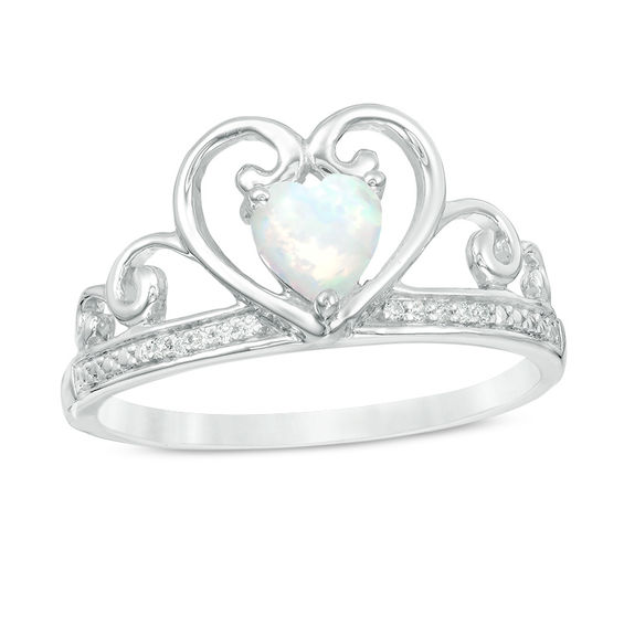 5.0mm Heart-Shaped Lab-Created Opal and Diamond Accent Tiara Ring in