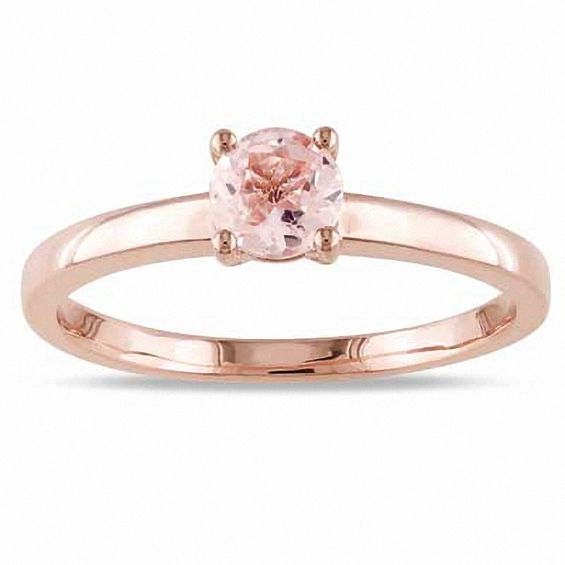 Pledge your love and commitment to her with this exquisite promise ring. Expertly crafted in precious 10K rose gold, the eye is drawn to the 5.0mm round pink morganite gemstone at the centre. Thought to be the gemstone of the universal heart, this soft pink sparkler needs no other accompaniment. A generous gift of love, this ring is finished with a bright polished shine.