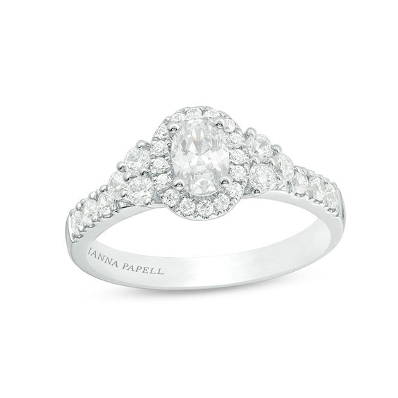 With a graceful look, this certified diamond engagement ring from Adrianna Papell speaks volumes about your love. Crafted in 14K two-toned gold, glimmering design showcases a 0.45 ct. certified oval-cut diamond – boasting a colour rank of F and clarity of I1 – wrapped in a diamond halo frame. Trios of diamonds flank the centrepiece, while additional diamonds line the shank. A rose gold logo underneath is her surprise. Sparkling with 0.95 ct. t.w. of diamonds and a brilliant buffed lustre, this engagement ring is certain to surprise and delight. This style arrives with a certificate that includes a photo and a description of the diamond, which guarantees quality and can be used for insurance purposes.