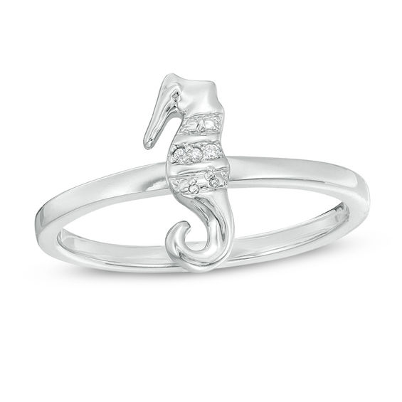 Capture your interest in sea life – and let it shine – in this sparkling stackable ring. Crafted in sterling silver, this seahorse band – lined with diamond accents – is a charming addition to your stack. Buffed to a brilliant lustre, this style is sure to be adored. Custom-made to fit her ring size. Sterling silver rings cannot be resized after purchase.